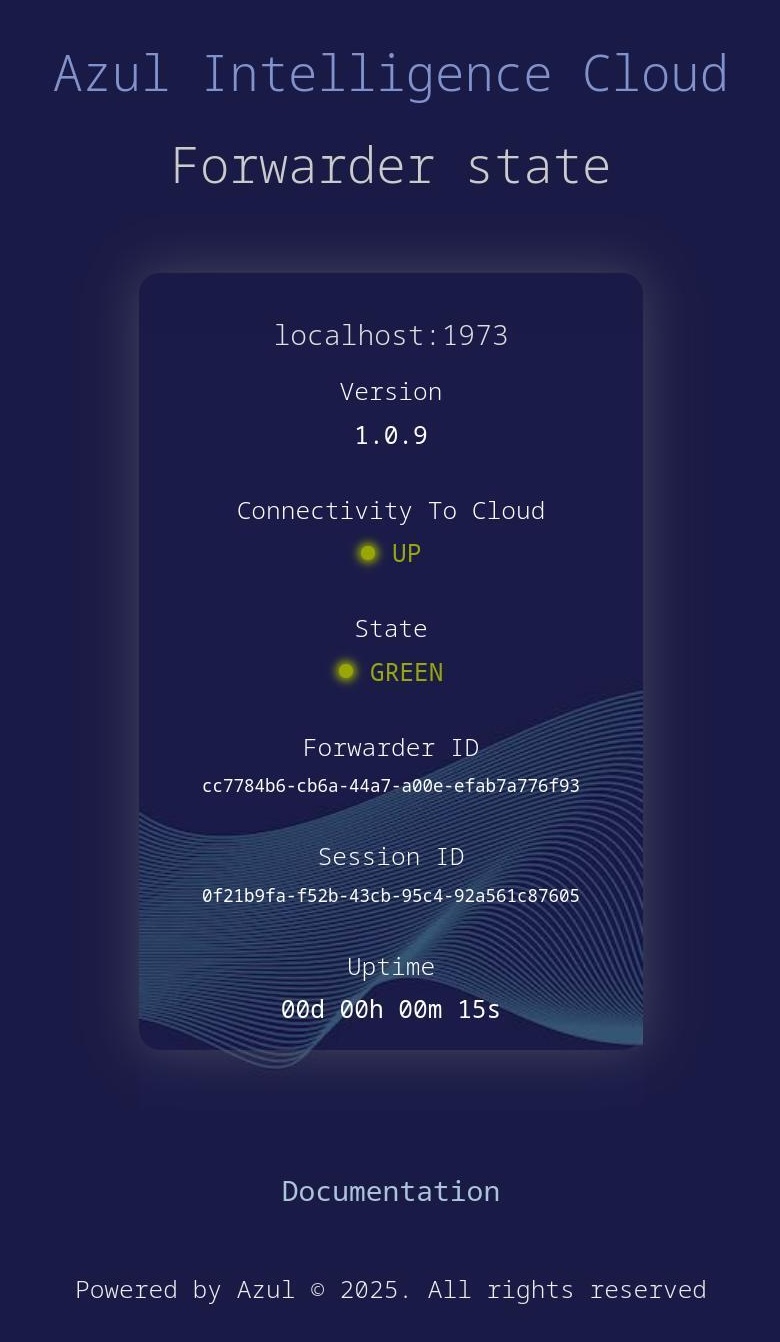 After a successful startup, a status page is available at the address https://{forwarder_endpoint}.